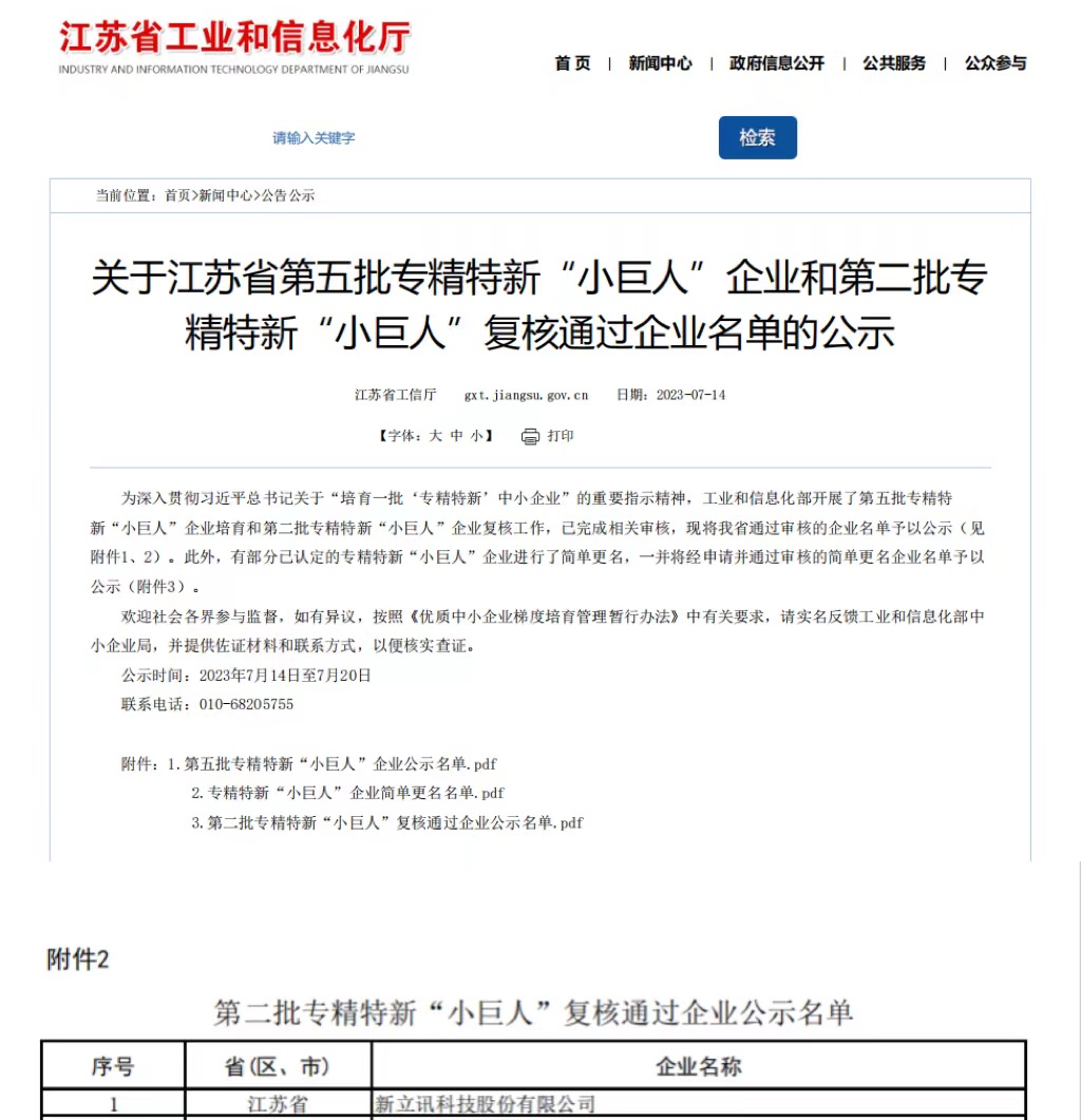 近日,江蘇省工信廳《2025年度江蘇省“三首兩新”擬認(rèn)定技術(shù)產(chǎn)品名單》公布,新立訊科技集團(tuán)《...